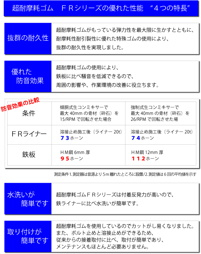 超耐摩耗ゴム FRシリーズ の性能と“ 4つの特長 ”